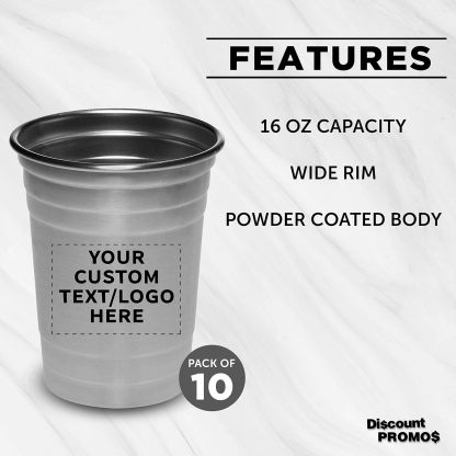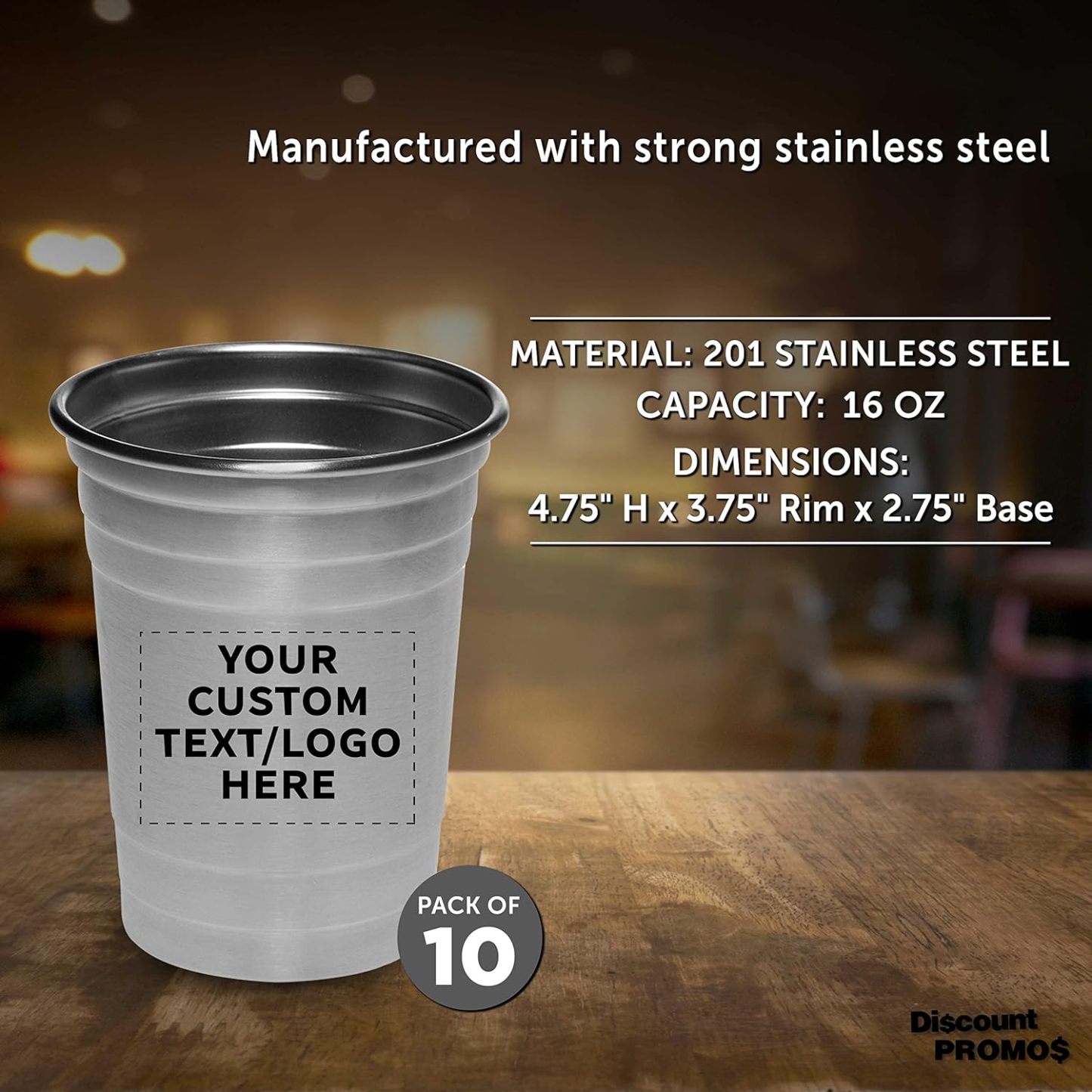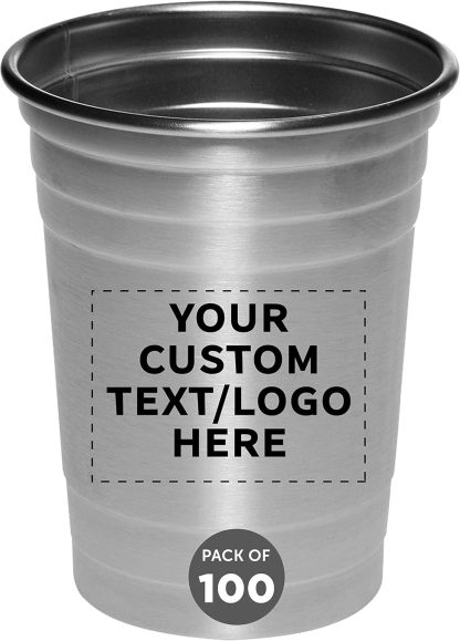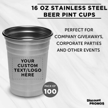 Custom Stainless Steel Beer Cups 16 oz. Set of 100, Personalized Bulk Pack - Perfect for Corporate Parties, Indoor & Outdoor Events - Silver