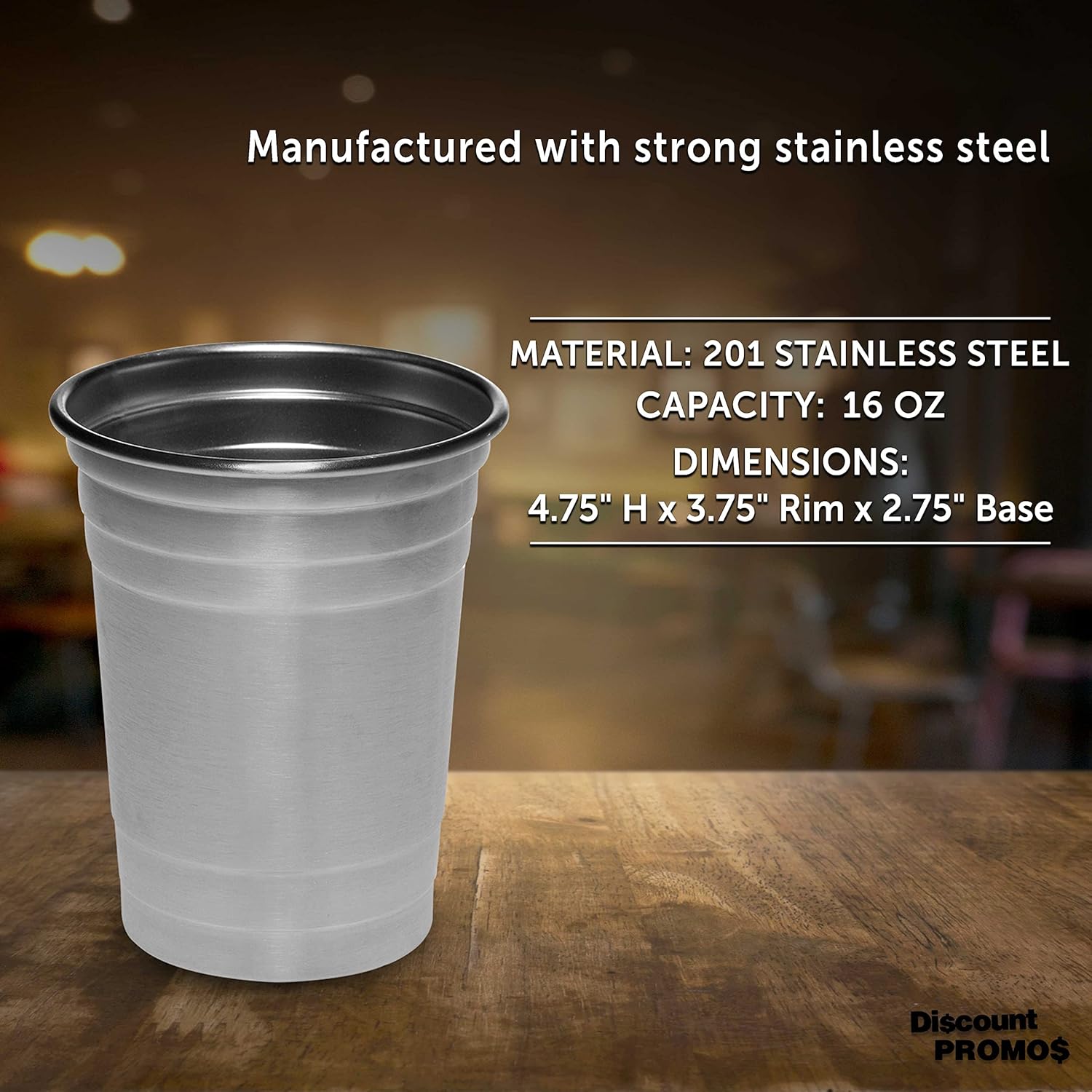 - STAINLESS STEEL - Stay stress free knowing your cups will be safe and be a hit at your restaurant or next get together. 16 oz. Stainless Steel beer cups are strong so they won't crack, chip, or break easily. They are great for the bar, near the pool, or for gatherings. Stay stress free knowing your cups will be safe and be a hit at your restaurant or next get together.