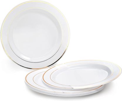 - Disposable Plastic Plates. Looks like real china. Ideal for holidays, large gatherings, weddings and special events, where you want an elegant and fancy look with the convenience of disposable.